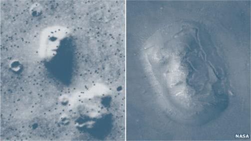 Именно этот факт вызвал шумиху и целую вереницу домыслов о том, что жизнь на Марсе возможна. Более того, по мнению многих, это «доказывало», что на планете была развитая цивилизация, которая могла оставить после себя гигантские человекообразные мемориалы. На самом деле это обычная гора и всего лишь игра теней, что доказали фотографии более высокого разрешения, полученные космическими аппаратами двадцатью пятью годами позже. Наш мозг хочет видеть на этой фотографии то, чего там нет.
