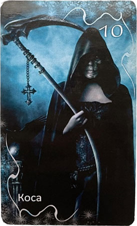 В вопросах магии: это отрезание и обрезание связей, каналов, работы на разрыв и развод. Провоцирование человека на драку, чтобы получить травму. В магии Коса – это опасность травм или указание порезать кожу для ритуала (в сочетании карт Коса и Кровь).