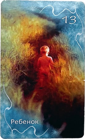 Нейтральная карта. Является картой-бланкой или сигнификатором людей, когда мы хотим просмотреть ситуацию с ребенком вопрошаемого, возможные вопросы беременности. Сама карта – символ чистоты и открытости новому. Необремененность никакими заботами. Получение нового опыта или обучение чему-либо. Не плохая и не хорошая, всегда зависит от близлежащих карт. Может показать самого ребенка и качества, присущие ему – наивность, невинность, капризность, инфантильность, непосредственность и прямоту.