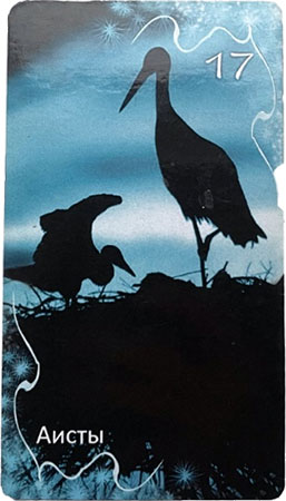 Аист – это движение, полет, символ семьи. Карта говорит о прибавлении в семье, означает плодородие. Классически обозначает детей, семью и приверженность традициям. Также по Аисту идут изменения и повторяющиеся циклы, перемещения.