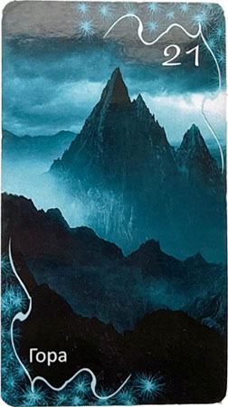 На карте изображена огромная скала, лишенная растительности в окружении гор. Атмосфера мрачная и суровая. Карта символизирует трудности и препятствия, блоки. Покажет людей и обстоятельства, которые мешают кверенту в исполнении задуманного. Символизирует задержки и трудности. Гору в одиночку трудно покорить, поэтому воспринимайте карту как трудность, которую нужно покорить; на это нужно время.