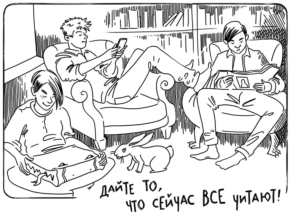 А надо было просто со словами: «Ка-а-ак, вы не читали?! Да это же главная книга всех времен, вы что-о?!» – сгрузить на человека полмагазина.