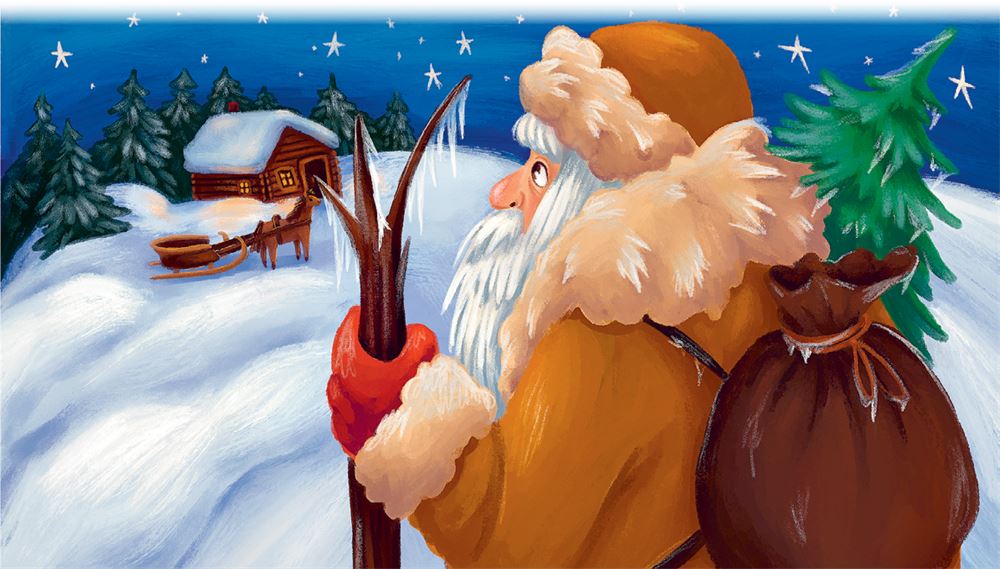 – Пора, пора мне, ребятки, в путь. Отправляюсь в свой ледяной дом, – стал объяснять дедушка, закидывая на плечо опустевший мешок. – А вы ждите меня. Весь год ждите. И когда приду я к вам, увижу всех под ёлочкой, тут вы мне и расскажете, чему за год научились: кто лошадь запрягать, кто крестиком вышивать, а кто грамоту освоил. И песню мою споёте новогоднюю… Договорились?