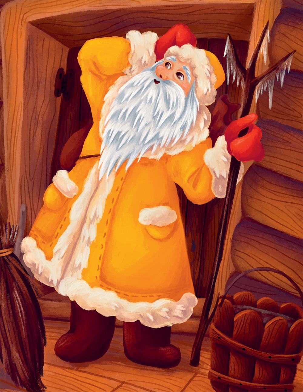 Потому что ах! – дверь открылась… И вошёл в избу дед – в длинной шубе, в шапке и больших рукавицах. Вся борода в сосульках, звенят ледяные усы, брови в инее, нос красный.