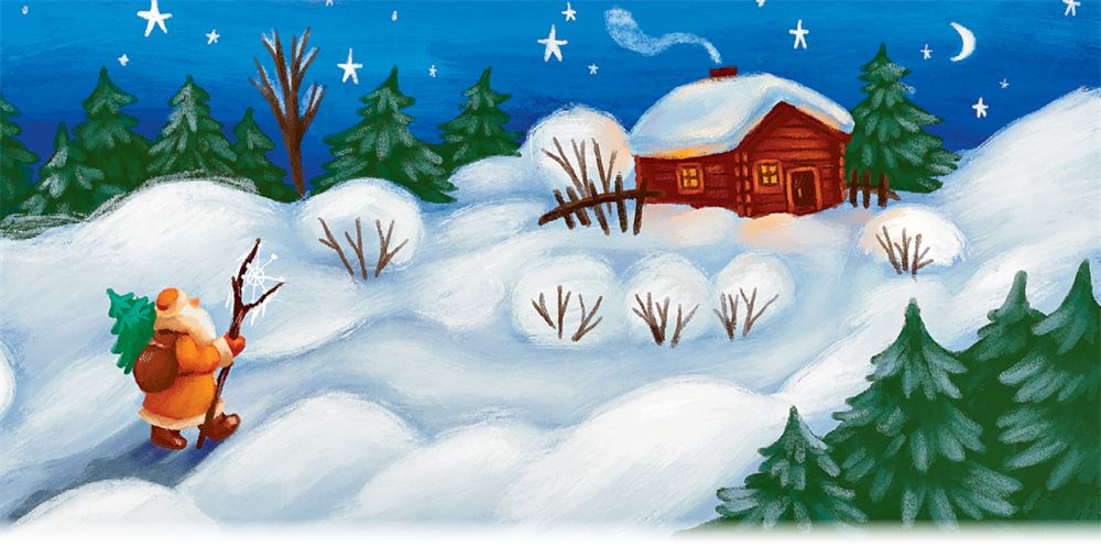 Приезжал молодой проверщик из города, потихоньку подглядывал, как дети живут, как хозяйство своё ведут. То там поможет, то тут – но только так, чтобы они не видели. А когда узнал, что они шубу, которая не спасла их дедушку от злого мороза, продают, выкупил её через третьи руки – да и придумал, как он сиротам праздник счастливым сделает. Весь год по копеечке откладывал, накупил леденцов и пряников, яблочек и игрушек, подарки сложил в мешок, ёлку украсил. Скрутил усы и бороду из мочала, облил водой и на мороз выставил – хороши получились! Нарядился добрым дедом: шуба поношенная, борода мороженная. Нахлобучил мохнатую шапку, большие рукавицы надел, взвалил на плечи мешок, в одну руку посох дорожный, в другую – ёлку новогоднюю. И долгой дорогой, через поле, через лес к детишкам в избушку отправился.