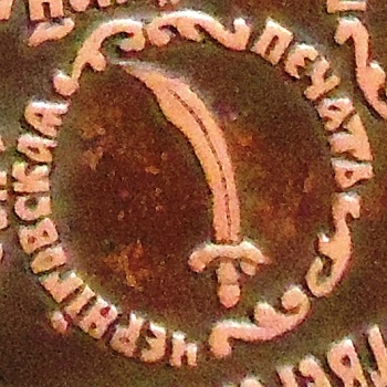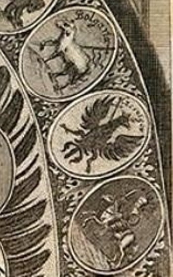 Любопытно, что в зарубежных зарисовках герба нижняя половина креста потерялась.