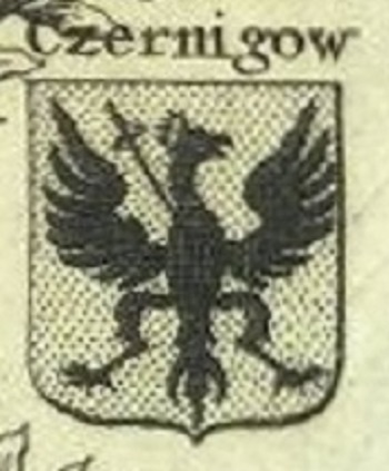 Что же касается геральдического символа Черниговщины, то гербом созданного поляками в 1633-35 годах Черниговского воеводства стал двуглавый орел с вензелем польского короля Владислава на груди. Описание это было приведено в гербовнике Каспера Несецкого «Корона Польская» (Korona Polska), изданном в 1728—1743 годах.