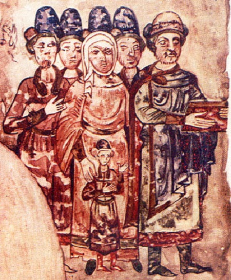 Вот они всей семьей на миниатюре из «Изборника», маленький Ярослав – перед матерью.
