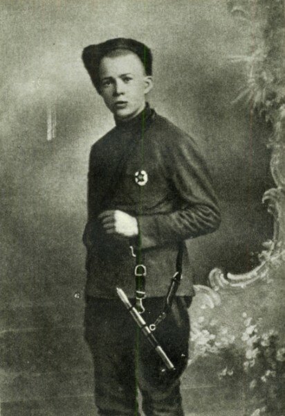 Аркадий Голиков, будущий Гайдар, 15-летний адъютант командующего охраны обороны всех железных дорог, 1919 г.