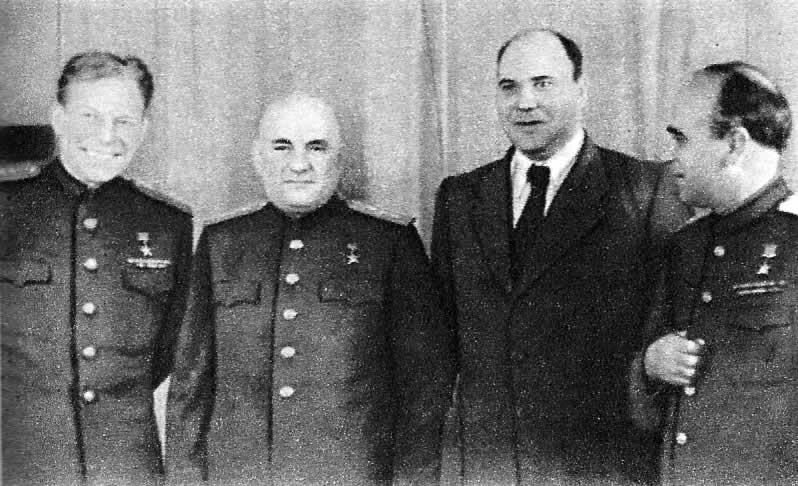Легенды советской промышленности. Слева направо: Д. Ф. Устинов, Б. Л. Ванников, А. И. Ефремов, В. А. Малышев, 1943 г.
