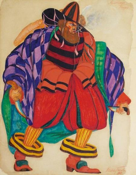 Вот для наглядности эскизы костюмов, собственноручно нарисованные им к своей постановке балета-пантомимы «Арлекинада» 1919 г.