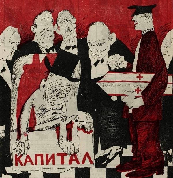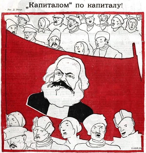 А вот карикатура Дмитрия Моора «Капиталом» по капиталу!», нарисованная к годовщине смерти Карла Маркса.