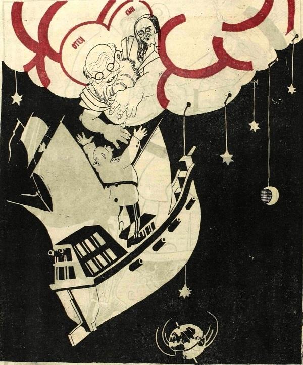 Карикатура Дмитрия Мельникова «Окрылимся!» за 1923 год иллюстрирует следующую цитату.