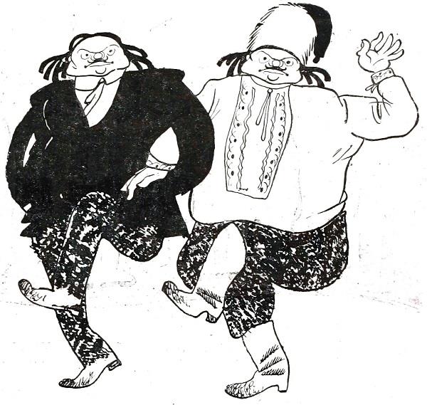 «В Мюнхене несколько марковских молодцов нарядились в украинские костюмы и в этом виде возглашали: «Бей жидов!», «Встанем на колени перед царем!» и т. д. Монархисты на этом основании гордо заявляли: «Нашего полку прибыло, – с нами украинцы!» (Из газет).
