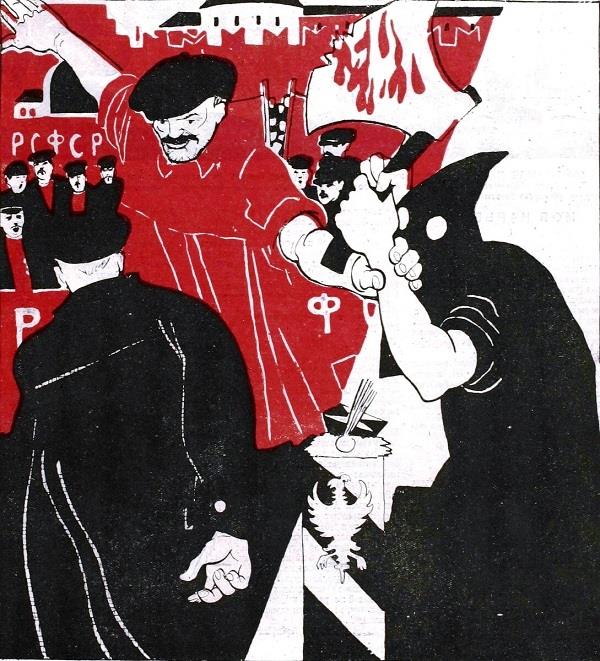 Карикатура Дмитрия Моора «Польским коммунистам – привет!» увидела свет в 1923 году и была приурочена к прибытию в СССР выпущенного из тюрьмы польского коммуниста Томаша Яна Домбаля.