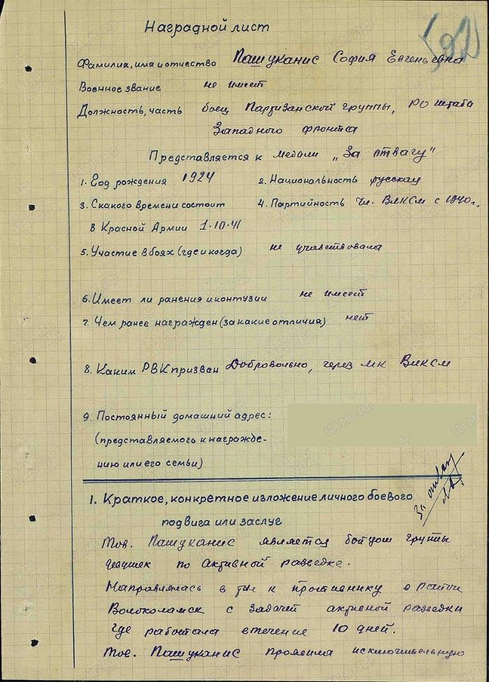 Работа диверсанта чрезвычайно тяжела не только морально, но и чисто физически. Если посмотреть биографии наших героинь, мы увидим, что подавляющее большинство успешных бойцов были деревенскими девушками, с детства привыкшими к запредельным физическим нагрузкам во время страды. Софья Пашуканис была одной из немногих удержавшихся в отряде горожанок, да еще и из интеллигентной семьи. Тем не менее медаль «За отвагу» она получила за успешный десятидневный рейд по тылам противника в районе Волоколамска, в ходе которого лично уничтожила трех фашистов.