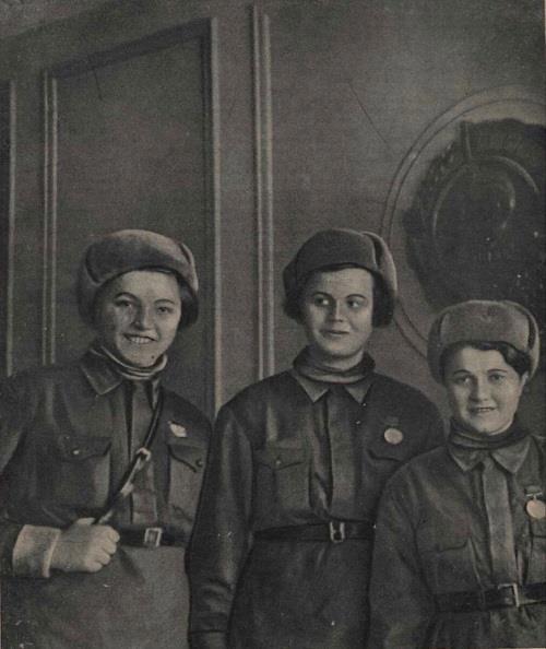 Свои «отважные» медали Кнопка (справа) и Соня (в центре) получали одновременно. Девушек сфотографировал знаменитый военный фотожурналист Иван Шагин, снимок вышел в журнале «Смена».