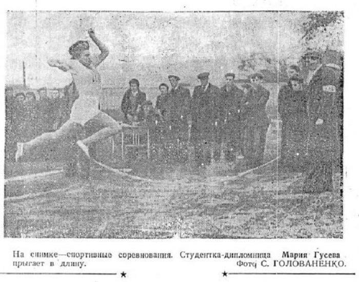 Кстати, спорт студентка Мария Гусева не бросила и по-прежнему отстаивала честь Института стали на различных соревнованиях. Последнее упоминание студентки Гусевой в газете «Сталь» – это фотография. Спортивным репортажем начали, им же и закончили.