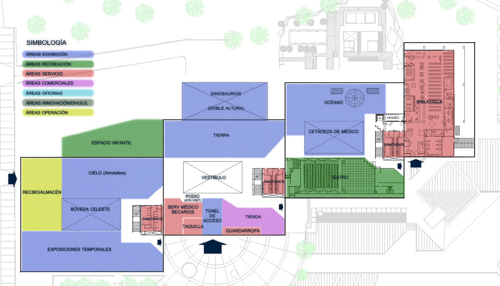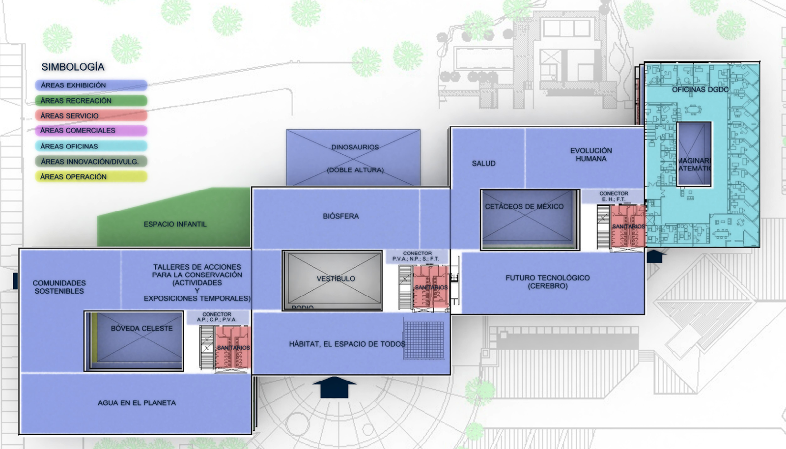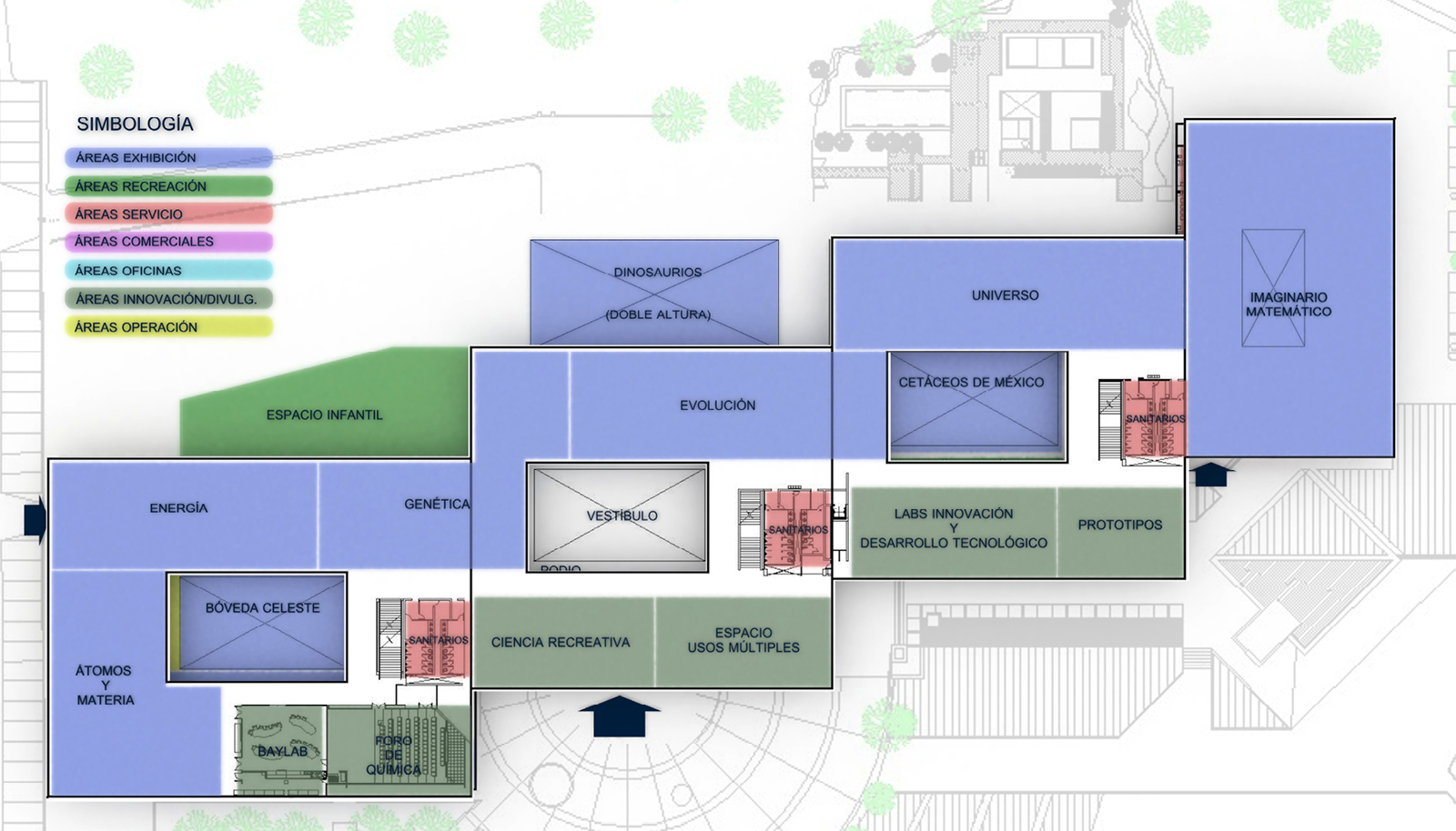 Un aspecto destacable en el planteamiento conceptual del proyecto es que ya no contempla el desarrollo de exhibiciones por “materias” (como física, química o biología), sino el diseño de exhibiciones a partir de grandes temas y enfoques abordados bajo una perspectiva interdisciplinaria y que “conecten” de forma efectiva al público que visite el museo. De esta manera, la propuesta sugiere una intervención espacial (al inmueble) importante, debido a la necesidad de adecuar los espacios de exhibición permanentes.