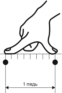 Изначально, по-видимому, все три элемента измерения – прибор, шкала и единица измерения – совпадали. Возьмем, например, русскую единицу измерения пядь. Пядь – это расстояние между кончиками большого и указательного пальцев при максимальном растяжении. Мы видим, что пядь является и измерительным инструментом, и шкалой, и единицей измерения.