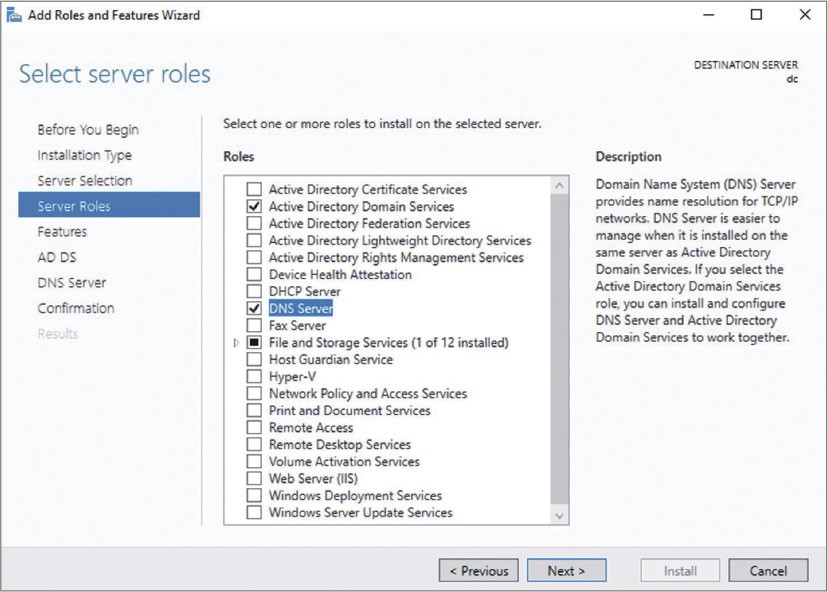 Запускаем Server Manager и выбираем Add roles and features. Следуем за мастером добавления новой роли. Нажимаем кнопку Next. Предложенные по умолчанию настройки нас будут устраивать, поэтому нажимаем кнопку Next до тех пор, пока не появится окно Select server roles.