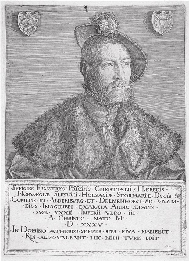 Хотя качество продукции, произведенной в Антверпене, получило всеобщее признание, родственники и знакомые короля оказали на него более непосредственное влияние. В этом случае главными действующими лицами был шурин Кристиана, герцог Пруссии Альбрехт I (1510–1525 – великий магистр Тевтонского ордена, 1525–1568 – герцог Пруссии) и его художник и графер Якоб Бинк (ок 1500 – ок. 1569). С 1533 года Бинк работал на датских королей, в основном в качестве портретиста (илл. 8). Позднее его нанял на службу Альбрехт, и он поселился в Кёнигсберге.