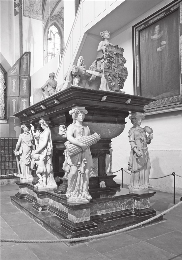 Хотя архитектурные формы капеллы Торгау в их общем виде вскоре начали ассоциировать с лютеранскими князьями, Датский двор впервые познакомился с ними в рамках династического празднества: венчания датской принцессы Анны Датской и Августа Саксонского. Это отражает гораздо более общий алгоритм, в соответствии с которым датская монархия покровительствовала искусствам. Набожный Кристиан III строил не только капеллы. Он также заказал в Антверпене солидный надгробный памятник своему отцу, Фредерику I. Его выполнил Корнелис Флорис (ок. 1514–1575), один из самых выдающихся скульпторов XVI века [Huysmans 1996: 81–84 и др.]. Этот монумент был создан за пределами чисто лютеранского мира, в Нижних землях, которые в большем масштабе снабжали монархов и королевский двор как выдающимися талантами, так и работами высокого качества. В целом заказ памятника у Флориса можно считать частью более широкого алгоритма экспорта предметов роскоши из нидерландских мастерских. Алтари и нагробия, выполненные в Антверпене и Брюсселе в XVI веке, можно найти в церквях вдоль всего побережья Балтийского моря и за его пределами [Jacobs 1998; Lipińska 2015].