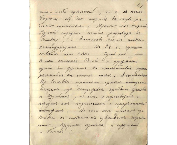 Страница из дневника Государя Николая II от 2 марта 1917 г (ГАРФ. Ф. 601. Оп.1. Д.265. Л.66,67)