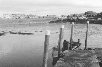 The severity was a guarantee of his seriousness. I met him for the first time when the boat was almost finished. His workshop is a Nissen hut on the shores of Flodabay. A curling strip of tarmac makes its tortuous way across rocks and around inlets down to the settlement. Nowhere in the British Isles that has been long inhabited can be bleaker than this. The ice-scraped gneiss shelters little more than dark peat hollows and sour grass. The houses of the people who live here are scattered along the road. There is no visible sign of community. It looks like a barren world.