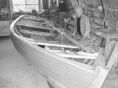 We went over it together for two hours, inch by inch. Although I had paid for it, and I was to use it, I was to trust my life to it, there was no doubt whose boat this was. John was describing his world. The boat to my eye was extraordinarily deep and wide for its length: sixteen feet long but six feet, two inches in the beam, and drawing at least two feet below the water line at the stern. ‘Take me through it,’ I said. Little spits of rain were coming in through the open doors of the workshop. ‘This boat is for the Minch,’ he said. ‘She is not off the shelf. She knows the conditions in which she’ll have to work. And she’s within your capabilities for handling. Twelve feet would be too small and anything bigger would be too big for you.’