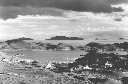 The Lemreway boys in 1881 planned to stay overnight on the islands. There was a shepherd and his family living there at the time. Donald Campbell, better known as Domhnall nan Eilean, or Donald of the Islands, had come over from Molinginish, a small township on the coast of Harris near the mouth of Loch Seaforth, twenty years before. He had his wife and children with him and together they lived in a good house of two rooms on the island, which had previously been called Eilean na Cille, the Island of the Church, but which they called Eilean an Tighe, House Island, the name it has today.
