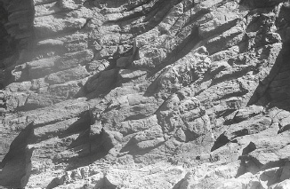 As they have revealed, the enormous main sill of Garbh Eilean and Eilean an Tighe is itself made up of at least four different pulses of magma. These were not violent events but of great scale and immense power, slowly applied; a slow squeezing apart of an abscess the size of fifty city blocks. The Shiants laid on Manhattan would stretch from Wall Street to Times Square. These successive pulses are not, as you might think, laid one on top of another, in the way you would assemble a sandwich: mustard on top of the ham on top of the cheese on top of the butter on top of the bread. Not at all: each new one inserted itself, in a hot, licking tongue of new magma, within the body of those that had come before. They could only have done that if the preceding magma was still quite soft. In other words, here in this main sill, they must have followed, one from the other, quite quickly. The picture is of a gradually fattening sandwich, made in something like a piece of pitta bread. You begin with the bread alone, and one by one, butter, jam and peanut butter are squeezed inside it. The sequence you end up with, then, is: bread, butter, jam, peanut butter, jam, butter, bread.