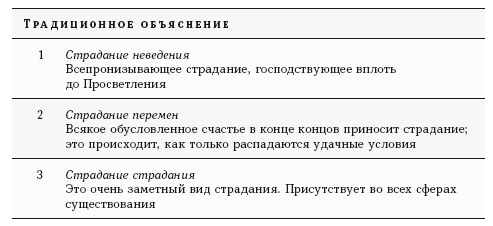 Будда различал три вида боли. Во-первых, «страдание страдания». Оно возникает, когда все рушится и человек не ощущает поддержки ни внутри, ни снаружи, – например, при тяжелых утратах, расставании, непреодолимых физических мучениях или смерти в отсутствие непреходящих ценностей. «Страдание непостоянства» означает, что в обусловленном мире не за что ухватиться – вся радость, вся красота и все удовольствия в конце концов утекают у нас между пальцами. И, наконец, «страдание неведения» указывает на непросветленное состояние, из-за которого мы не способны понимать природу вещей11. Занятые первыми двумя грубыми формами страдания, люди редко замечают гораздо более тонкий третий его вид. Однако именно он – первопричина всех бед и растворяется только при полном Просветлении.