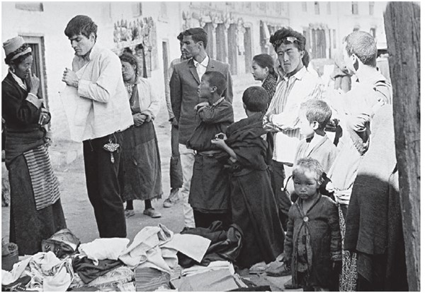 Из однородной массы широко улыбающихся лиц, которую мы наблюдали вначале, нас привлекали выходцы из Тибета, страны по ту сторону гор. Мы жадно покупали вещи, которые они приносили на продажу, общаясь с ними напрямую с помощью жестов.