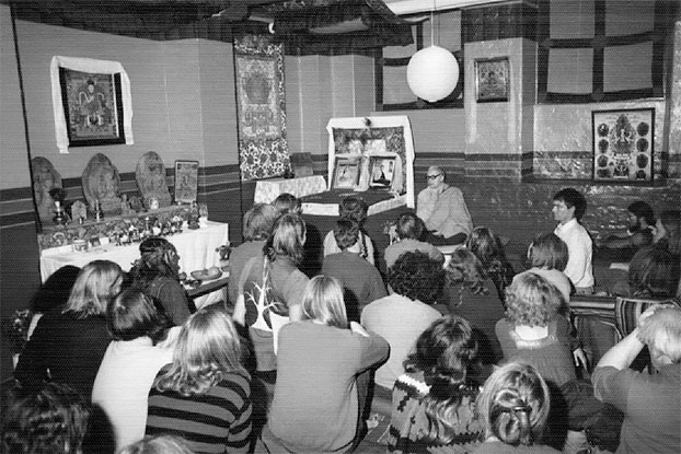 1974ДанияБолее года мы готовили приезд сочувственного Калу Ринпоче. Его отправил в Европу Кармапа, и Ринпоче специально для этой поездки получил загранпаспорт. Пока мы сжигали бензин и шины на дорогах, каждый день приезжая в новое место, наши друзья в Копенгагене делали ремонт в помещениях «Активного университета», чтобы Калу Ринпоче и его ламы могли там остановиться. Будь у нас время, мы отремонтировали бы весь институт, как сделали это позже к приезду Кармапы. Профессор, который предоставил нам помещения, вполне того заслуживал, но пока у нас не было такой возможности.