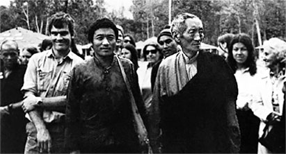 Мы встречались с ним только один раз – в Стокгольме в сентябре 1973 года. Там Трунгпа навещал наших знакомых из краеведческого музея. Они разрешили ему сфотографировать серию очень подробных тханок (тибетских свитков), представляющих жизнь великого йогина Миларепы. Встреча с Трунгпой Тулку оставила неизгладимое впечатление. Видеть знаменитого Ринпоче в костюме, сшитом на заказ, во время роскошного обеда с марочными винами урожая текущего года – это что-то новое. За предыдущие годы мы привыкли встречать учителей в красном одеянии, трезвых и бедных. Эта ситуация требовала слишком резкого переворота в сознании, и с ходу мы с ней справиться не смогли. Наша обычная преданность куда-то подевалась, но нам удалось хотя бы оставаться вежливыми.