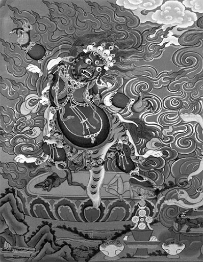 В Карма Линге поблизости от Клермон-Феррана мы провели несколько чудесных дней, и там Кармапа дал особенное посвящение в Алмаз в Руке из линии преемственности Карма Кагью. Такого посвящения у нас еще не было. К моему удивлению, мне показалось, что от прикосновения Кармапы я ничего не почувствовал, но потом благословение настигло меня с полной силой. Алмаз в Руке считается отцом Носящего Черный Плащ. Он действительно продемонстрировал свою близость. Он хранит тайные поучения и является силой всех Будд.