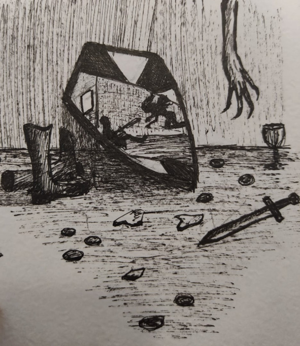 На его лице появилась усмешка, я думаю, ему льстит объяснять все это. Он чувствует себя важным, так делает большинство людей, говорят, чтоб говорить. Тогда я решил задать еще один вопрос. Но услышал взрыв, стены задрожали, а наверху поднялся громкий и пронзительный вопль. Это был знак. Не теряя времени, мы отодвинули крышку люка и по очереди вылезли в него, предусмотрительно закрыв за собой дверь. Оказавшись в большом каменном зале, по обеим сторонам которого находились широкие лестницы, мы сразу заметили ворота, через которые еще вылетали странные существа. Внешне они напоминали пожилых женщин, нарядившихся в маскарадные костюмы сороковых годов, не учитывая, что перья успели почернеть и начали выпадать. Немного вглядываясь вперед, можно было заметить, что эта армия кураги летит на взрыв. Катя, используя щит, как отражательную поверхность, готовилась дарить им тепло, а мы развернулись и побежали по лестницам, пытаясь забраться на самую вершину. Наши пути разошлись. Несмотря на то, что лестница выглядела довольно старой, в ее прочности можно было не сомневаться. Прыгая по идеально выровненным булыжникам, я плавно поднимался вверх. Лестница была очень длинной, почти нескончаемой. Теперь ясно, отчего здесь поселились гарпии, тут можно быть уверенным, что в гнездо никто не проникнет, не хватит сил дойти. Через какое-то время я наткнулся на дверь: толстая, почти непробиваемая, она стояла на моем пути. К такому меня не готовили, что я должен был делать в этой ситуации? У основания лестницы раздался визг. Я понял, что дело плохо. Выглянув в сквозную щель, пробитую напротив двери, я увидел, как мой компаньон, выкинув веревку из окна, с довольным видом лезет вниз. Чувствуя, что крик приближается, я инстинктивно облокотился на дверь, та отворилась, и я упал в комнату. Не теряя времени, я подпер дверь брусом, лежавшим неподалеку, и начал осматривать помещение. В голове пронеслось: «Дверь была не заперта?» Получается, я все это время сидел перед открытой дверью и отчаивался, больше не нужно так поступать. Весь этот мир кажется невозможным, я не ожидал, что некоторые вещи могут быть настолько простыми. Может, на самом деле все просто, вся жизнь проста, но почему-то люди привыкли все усложнять. Я прекрасно понимал, что мне нужно выиграть время, но найти монеты тоже необходимо. Рассуждая о двери, я поначалу не заметил, куда попал, но возвращаясь в реальность, был поражен. Окруженные толстыми серыми стенами, на полу валялись не только золотые монеты, но и многое другое. Наполированное оружие, щиты и доспехи, серебряная посуда, статуэтки, золотые слитки и даже стекло. Все это горело огнем, отражая солнечный свет, падающий из единственного окна. Теперь понятно, что так яростно защищают эти существа, люди за такие сокровища отдавали бы свои жизни не задумываясь, предавали бы друзей и близких, чтоб обладать ими. Вспомнив про план, я выглянул в окно, мой компаньон почти спустился, но его заметили. Отряд из дюжины гарпий стремительно летел вниз. Я взял щит и начал пускать зайчиков им в глаза. Самая первая из них была ослеплена и потеряла управление, она резко распахнула крылья и зависла в воздухе. Ближайшие к ней женщины не успели остановиться, поэтому влетели в нее на полной скорости. Трое было сбито, и они кубарем, отталкиваясь от стены, дружно полетели на скалы. Остальн