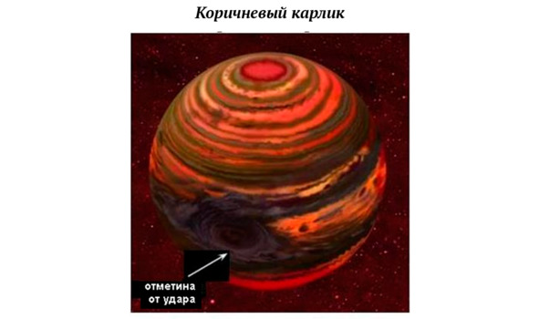 Тем ни менее, возгорание вокруг холодной оболочки и вероятно струи из трещинной пробоины, полученной ударом проникшего внутрь криосферы планеты, доставленной, реактивной волной взрыва звезды. Вспыхнувшее тело мега-ядра приобрело окрас «Коричневого карлика». Согласно древнегреческой мифологии Кронос – Бог времени, не безосновательно, его мега-ядро, приняв реактивный удар, от взрыва звезды, (ниже рис.) пришло в ускоренное, центростремительное движение вокруг своей оси. Запустив спиральный вихрь газопылевой среды, в нашем случае, с положения наблюдателя, находящейся Земли ниже плоскости горизонта, глядя, с южной стороны, на – север, движение потоков происходит по часовой стрелке, в круговом, тем ни менее, центростремительном вращении протопланетного диска.