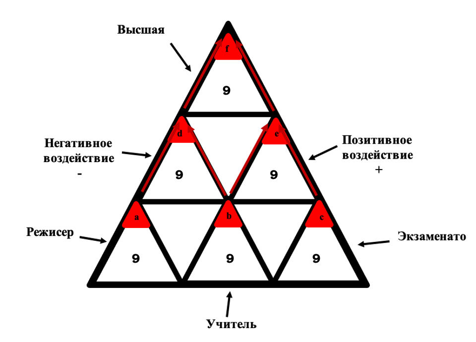 Треугольник А – это режиссер. Он разыгрывает фильм, нам показывают, где будут происходить события.