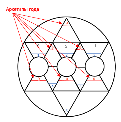 Годовой архетип мы ставим во всех треугольниках. Именно он, соединяясь с нашими расчетами, и базовыми архетипами.