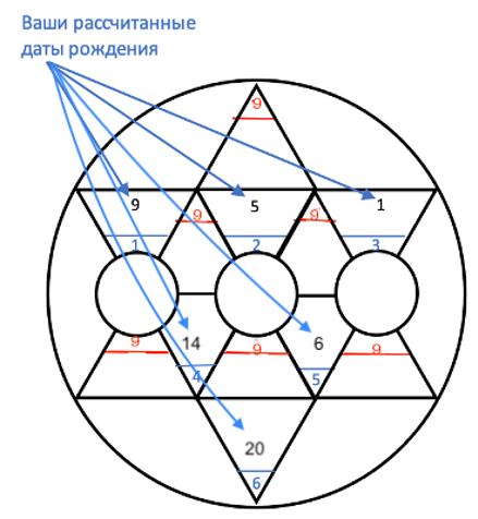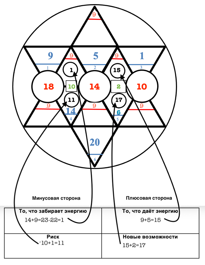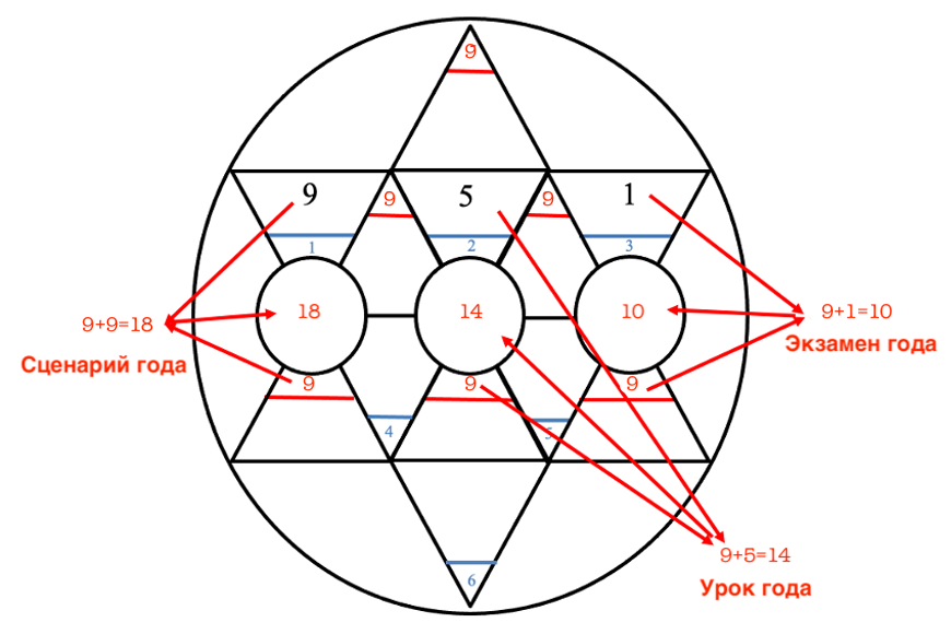 1. Берем 5-й треугольник (6) и + с архетипом года (9), и получаем (15) это то (что дает энергию).