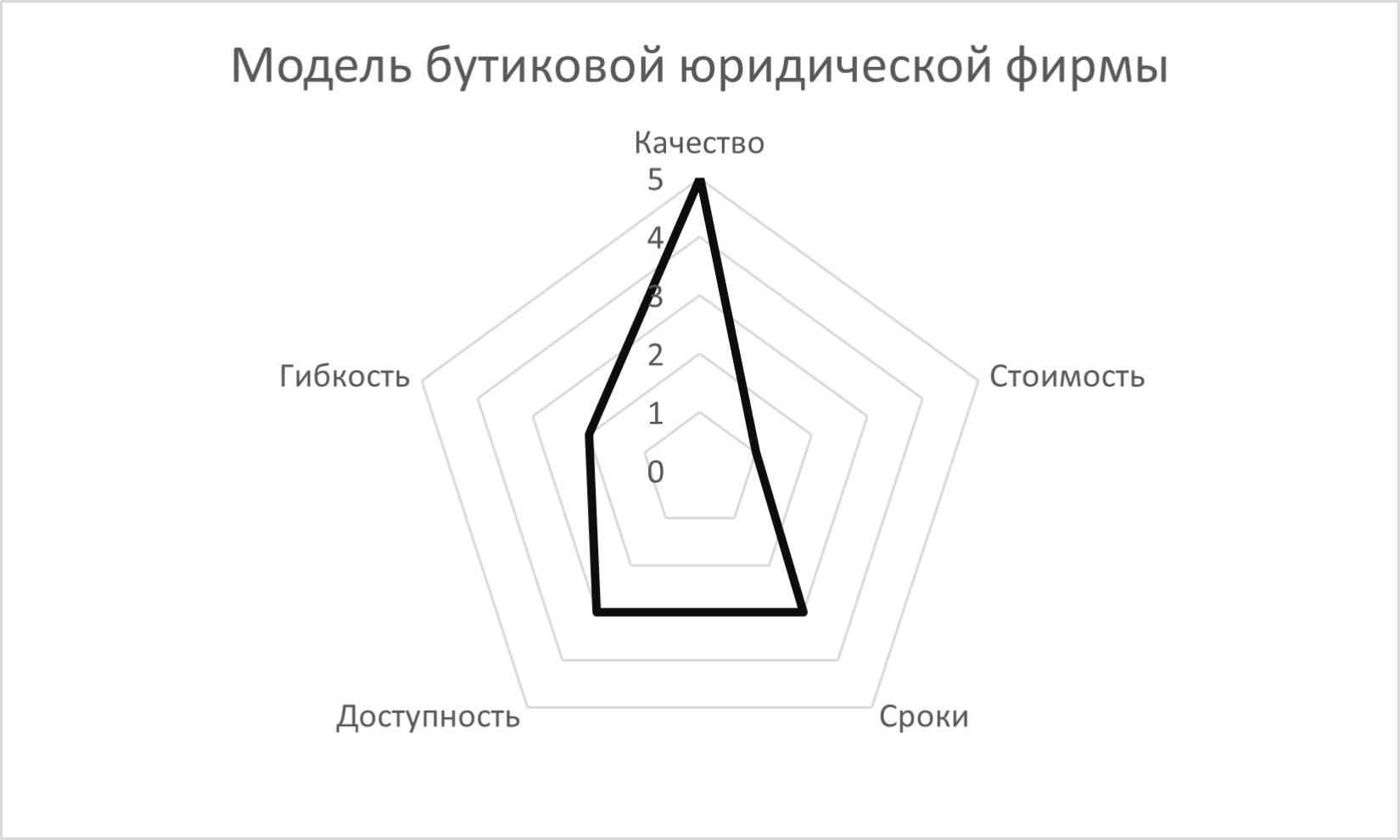 Другая модель юридического сервиса может быть условно названа «бутиковой». Здесь в приоритете – качество юридического продукта, к которому предъявляются самые высокие требования. Это всегда идеально оформленные заключения, во всех деталях отражающие юридическую оценку ситуации, это многостраничные договоры, предусматривающие все тонкости отношений сторон, это претензии и судебные иски, обстоятельно сформулированные и подкрепленные многочисленными аргументами и доказательствами. Конечно, такой качественный продукт невозможно подготовить очень быстро. Сроки предоставления данного сервиса всегда длиннее. Гибкость данного сервиса – также не на самом высоком уровне, поскольку фирмы этого порядка не готовы идти на компромисс и оказывать услугу на уровне ниже того, как они это умеют. Подобно тому, как производитель Феррари никогда не будет делать малолитражки или грузовики, даже если на них есть высокий спрос. Поскольку над продуктами юридического «бутика» трудятся высококвалифицированные юристы, данные услуги не могут стоить дешево.
