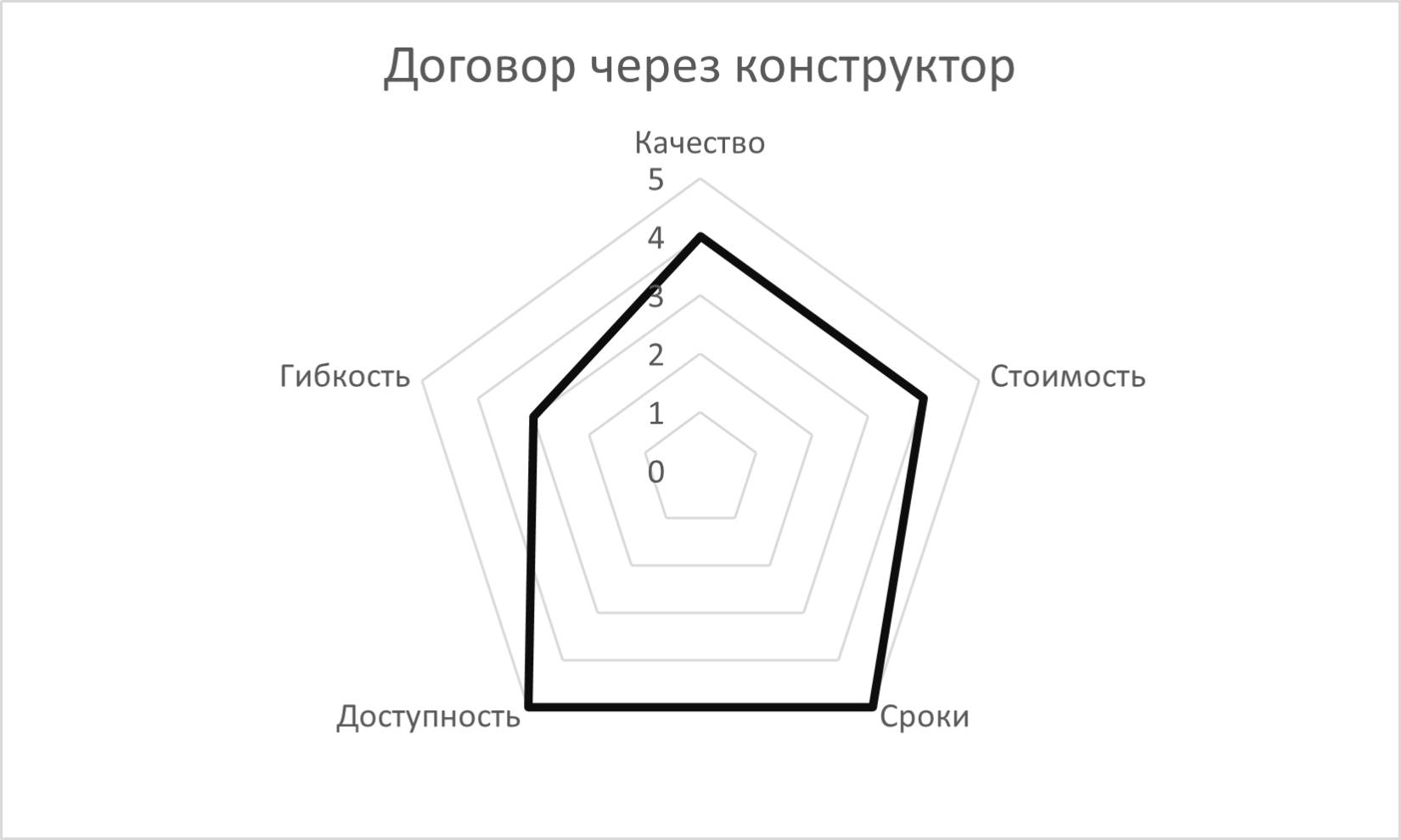 Автоматизация юридического сервиса может оказать заметное влияние на баланс операционных приоритетов. Предположим, что в компании создан конструктор договоров, работая в котором сотрудники «неюридических» бизнес-подразделений могут самостоятельно создавать договоры по формам, изначально подготовленным юристами и заложенным в программный продукт. В этом случае внутренний заказчик может получить договор быстрее, чем если будет ожидать его от юриста, а при его создании не будет задействован дорогостоящий ресурс юристов, не говоря уже о том, что этот сервис доступен в режиме 24/7. При этом, безусловно, гибкость в данном случае будет не самая высокая, так как для получения любого нового вида контракта потребуется сначала внести его в ИТ систему, что клиент сам сделать не сможет, а качество документа может быть ниже, чем если бы при его создании юристом последний уточнил у бизнес-заказчика все детали сделки и учел в ней какие то аспекты, которые изначально невозможно было «зашить» в конструктор. В результате у нас получается другое соотношение операционных приоритетов, чем при создании договоров руками юристов: