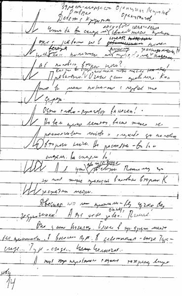 Вскакивает в пять и три часа жестоко хлещет себя по лицу. Перед трюмо. То ли ум в себя вколачивает, то ли чего из себя лишнее выколачивает, то ли ещё чего…
