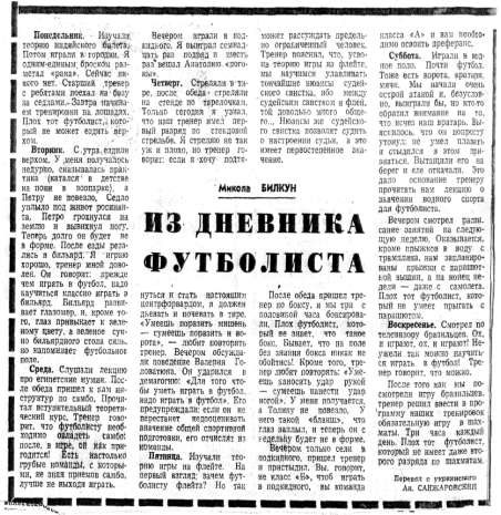 Публикация перевода «Из дневника футболиста» в «Клубе 12 стульев» «Литературной газеты» 28 мая 1969 года.