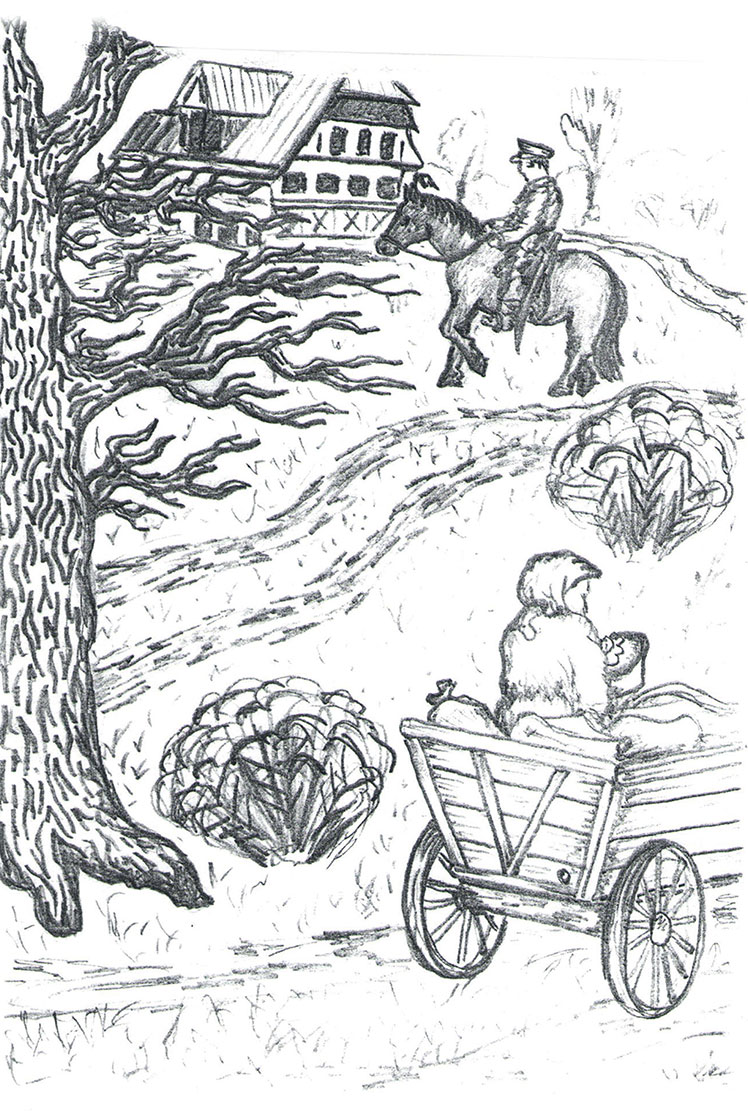 Поутру и поехали. По слову графа зажёгся стог сена как сигнал для неё, чтобы двигалась дальше.