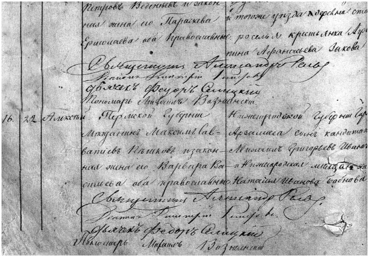 Запись в метрической книге Варваринской церкви о рождении Алексея – будущего писателя М. Горького