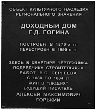 Весной 1883 года Сергеев предложил Алёше: «Прилажу тебя на ярмарку; будешь ты у меня вроде десятника принимать всякий материал, смотреть, чтоб всё было вовремя на месте и чтоб рабочие не воровали, – идет?» Молодой человек согласился и опять стал жить в доме № 5б по улице Звездинке. Позднее в повести «В людях» М. Горький написал: