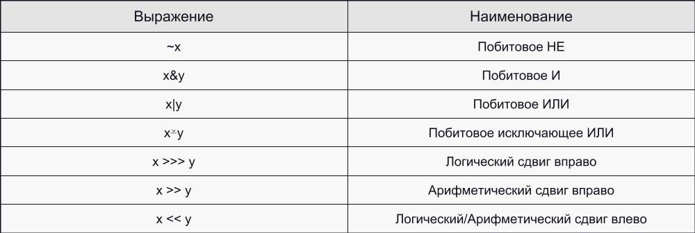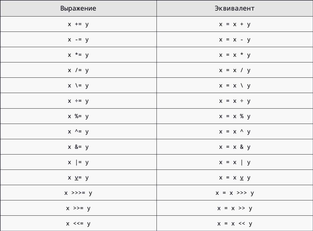 Версии всех двоичных арифметических и побитовых операторов: